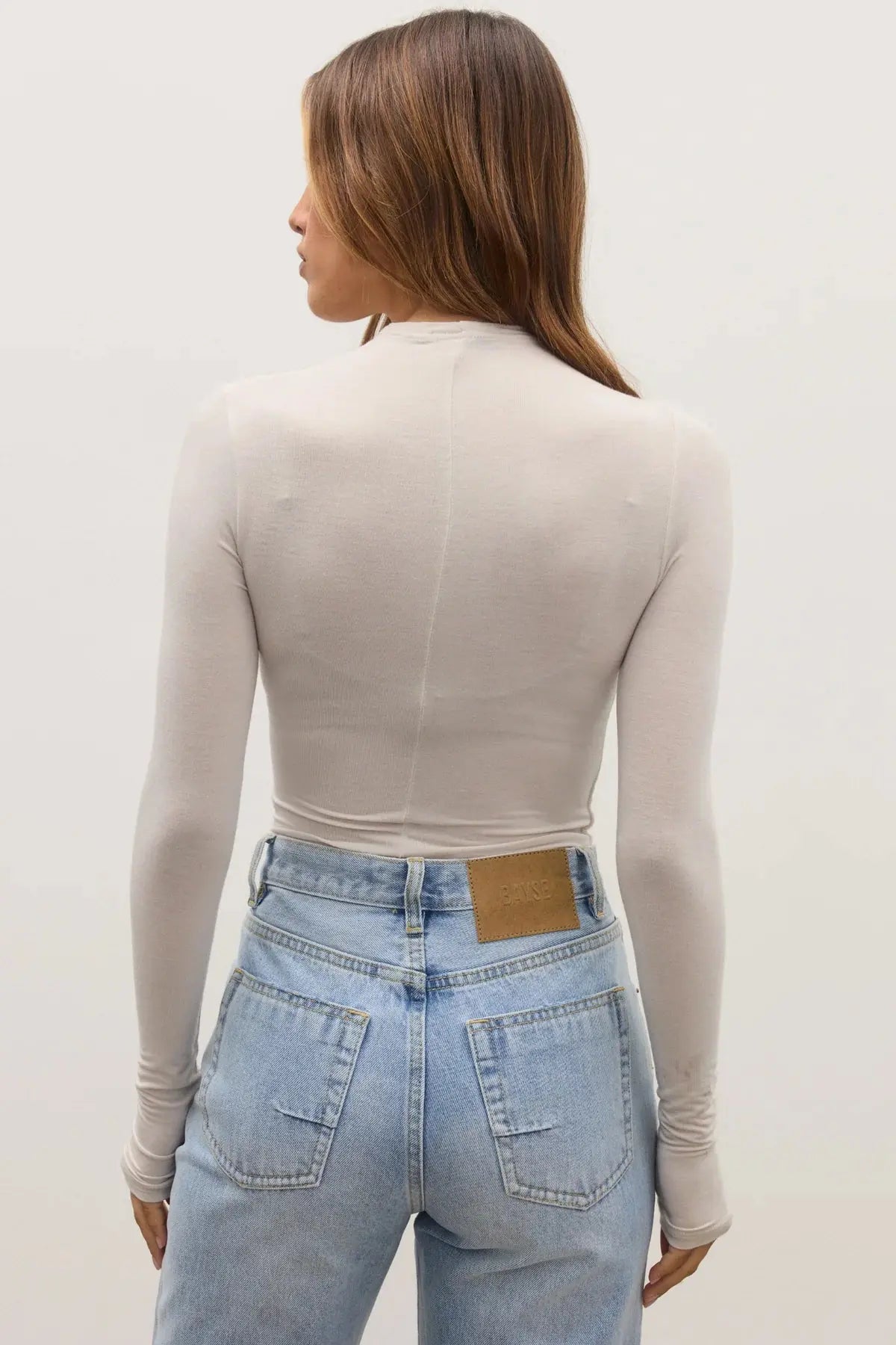 Meet our new Amrita Bodysuit in Baby. A timeless yet stylistic piece crafted from soft, stretch-knit fabric in a Baby mono tone. This bodysuit is a key addition to your capsule wardrobe by seamlessly combining comfort with style.