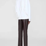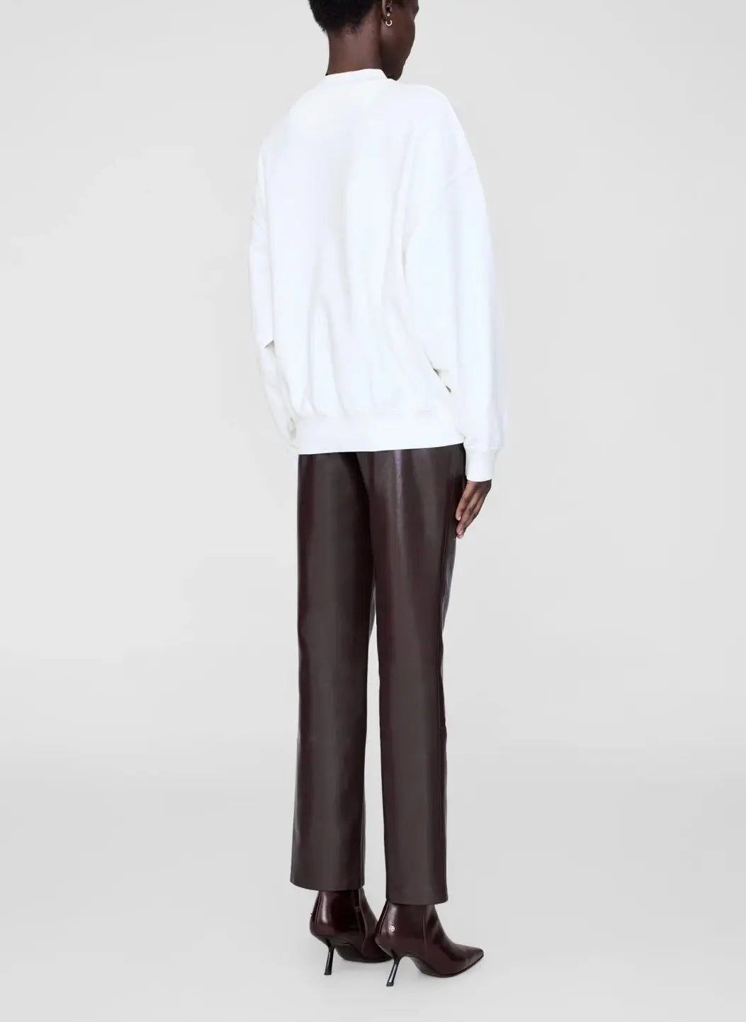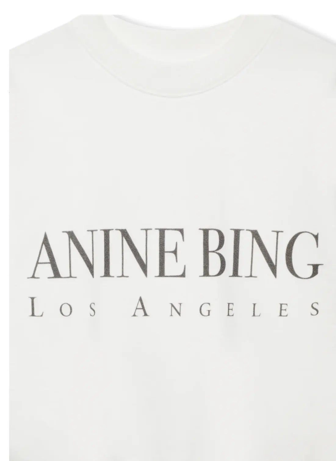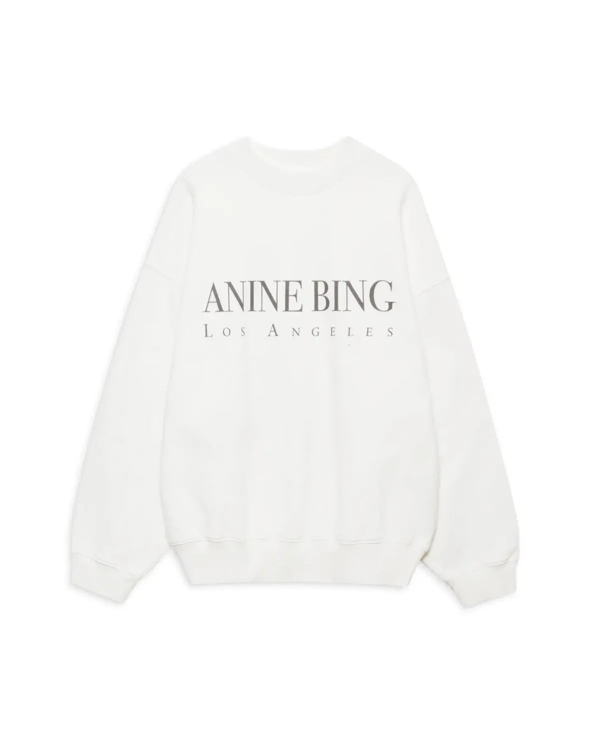 Anine Bing Jaci Sweatshirt Los Angeles in Ivory. The Jaci Sweatshirt Monogram is an oversized crewneck pullover made from midweight cotton fleece in ivory. This cozy separate features an ANINE BING logo graphic in contrast black screen printed on the front.