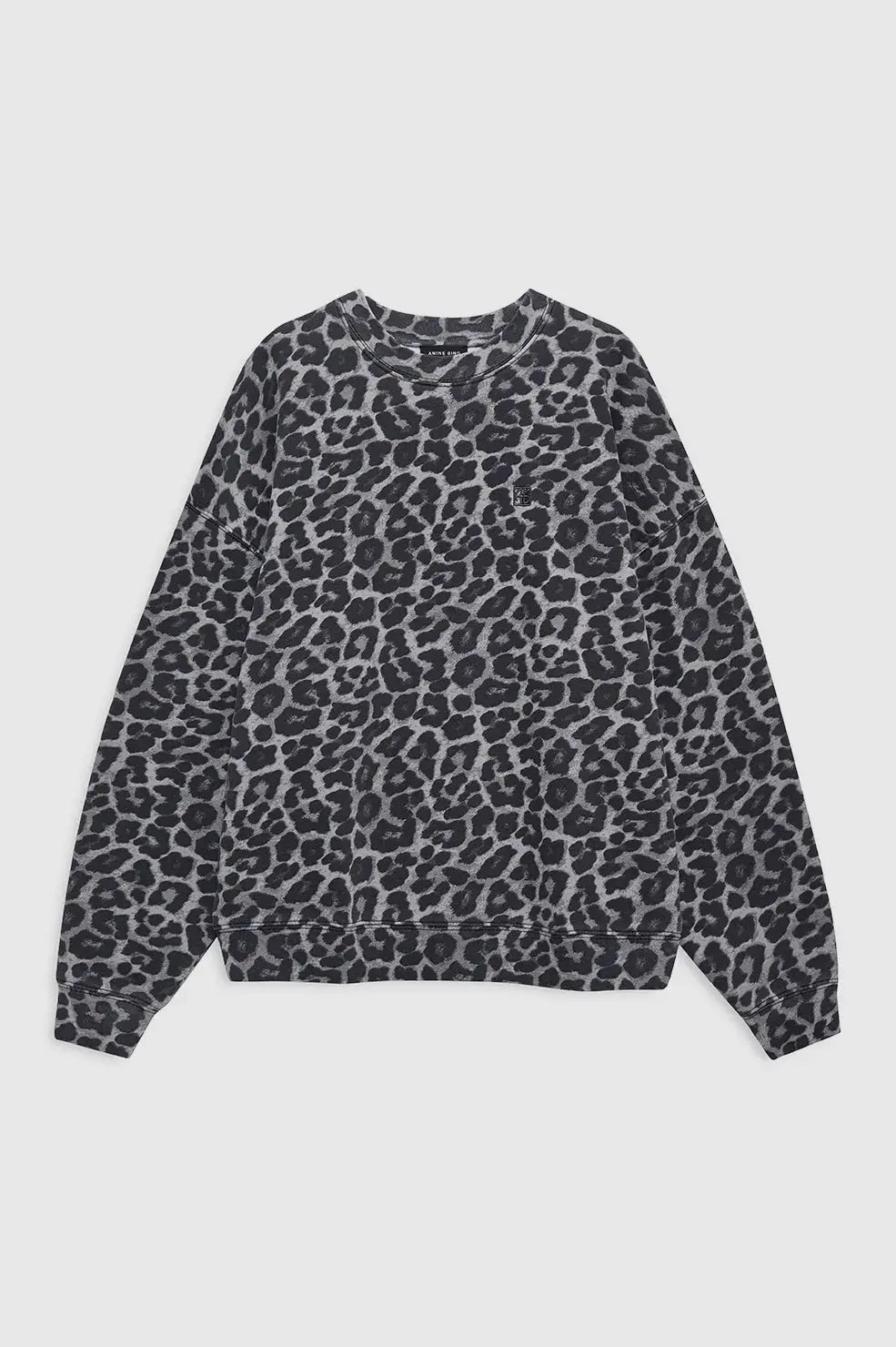 The Miles Sweatshirt ANINE BING is an oversized crewneck pullover made from midweight 100% organic cotton fleece in vintage-inspired leopard.