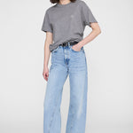 The Anine Bing Wagner Tee in Soft Stencil Cream is a classic oversized white t-shirt designed for effortless everyday wear. Featuring a crew neckline, short sleeves, straight hem, and signature logo print, this tee is crafted for a relaxed fit with a modern edge. Perfect for pairing with denim, shorts, or layering year-round.