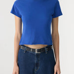 Designed as a high rotation staple, the Raw Edge Baby T-Shirt is crafted from light-weight organic cotton single jersey for a slim fit shape. The final garment boasts a classic crew neck in organic cotton rib, cap sleeves and a cropped silhouette. Refined by a raw edge hem and signature contrast Bassike stitch detail. Easy for everyday wear.