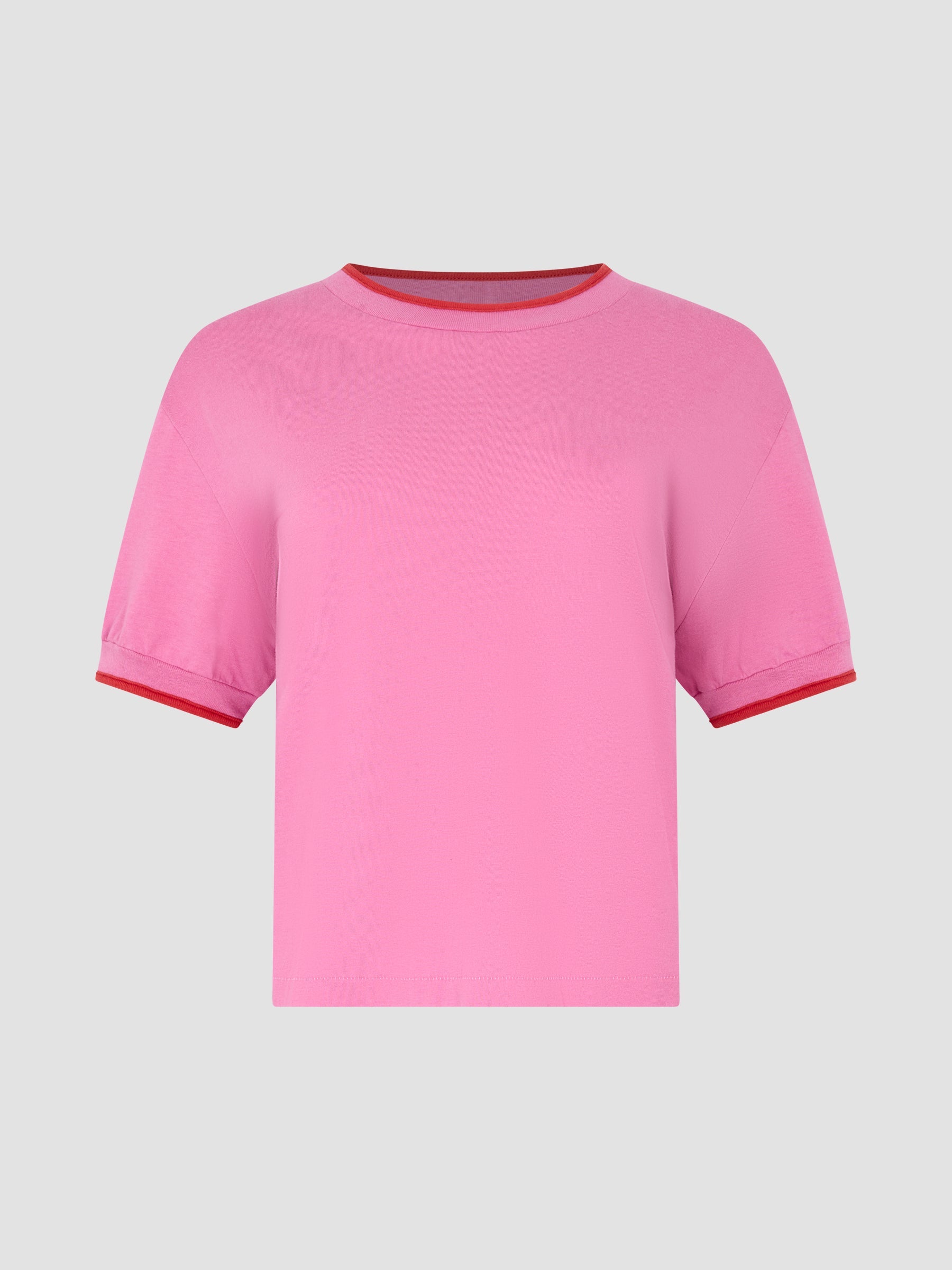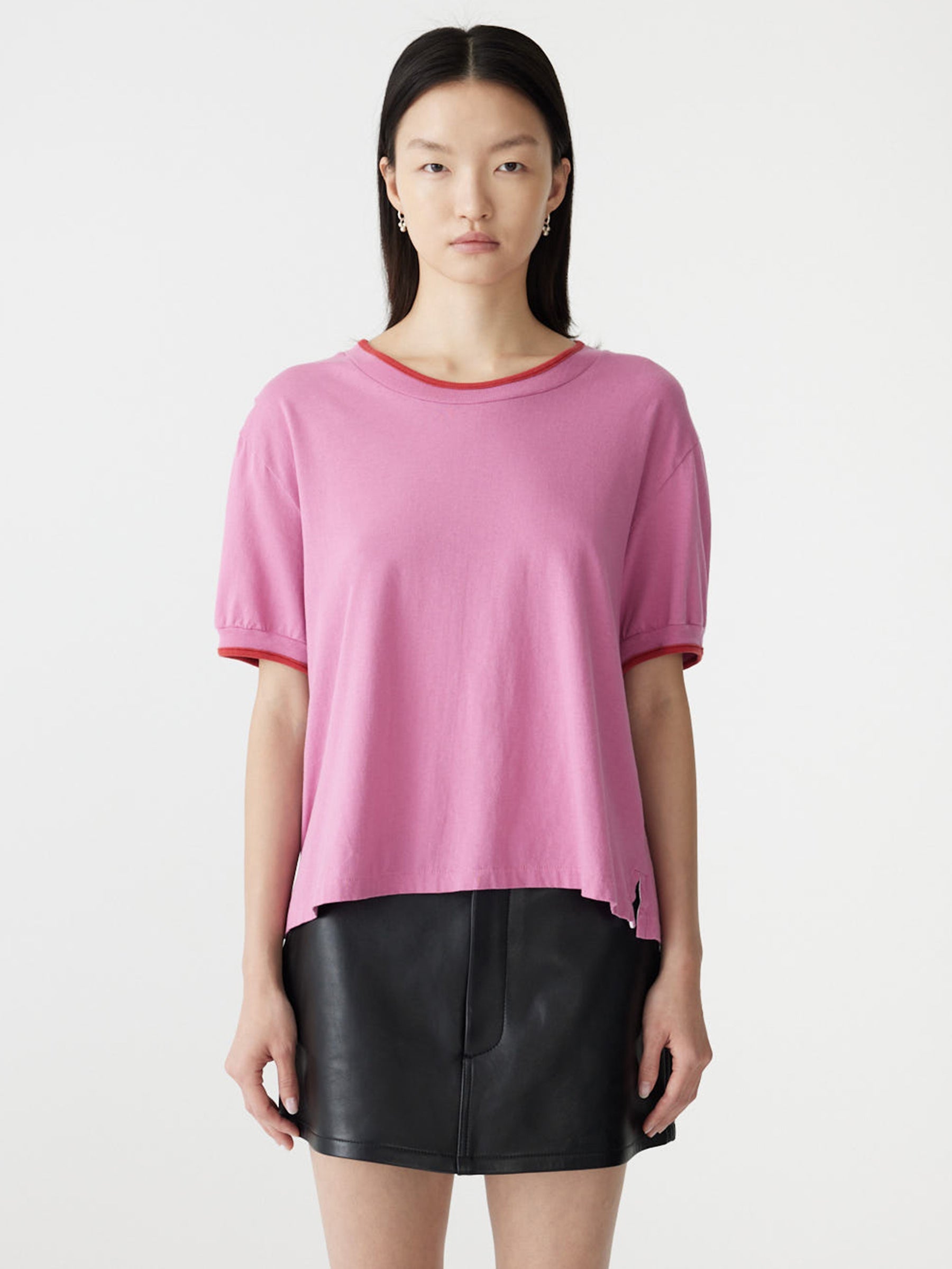 Layered Neck T-Shirt in Pink/Red