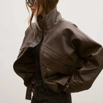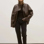 Introducing our Inez jacket, the ultimate cool girl jacket in a rich chocolate brown. Designed with two large front pockets, a high collar and detachable shoulder pads, this biker style jacket is ready to elevate your winter wardrobe.