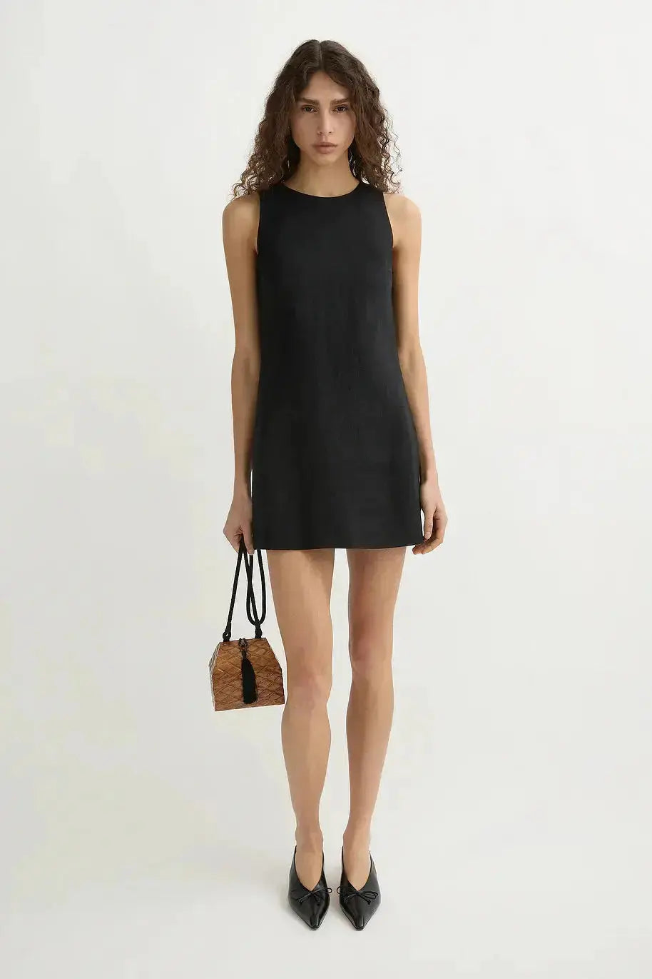 Tailored from premium linen, the Ellen Mini Dress is designed for a close fit and features an elegant high neckline. Styles yours with sandals or heels.