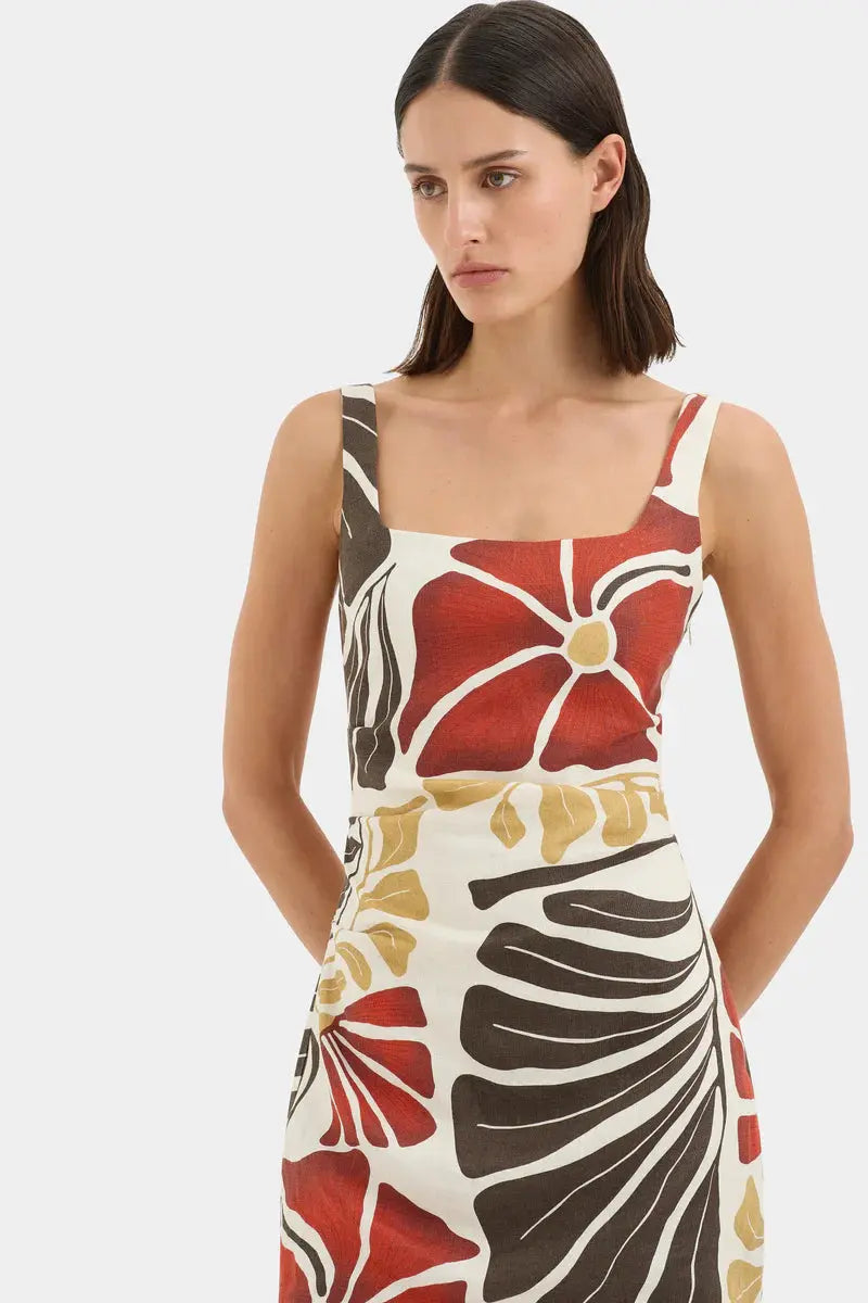 The Julietta Mini Dress is crafted from our signature midweight linen in a SIR. custom floral print. It features a square neck, wide over the shoulder straps, and tucks through the sides for a gathered finish.