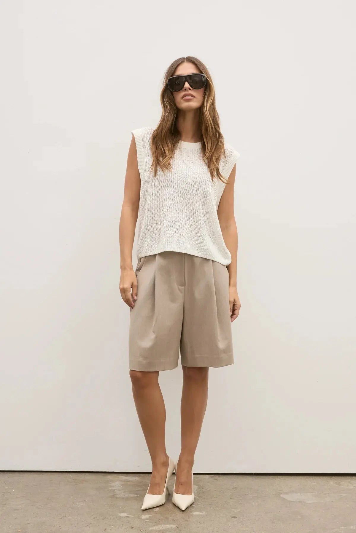 The Margo Knit Vest is crafted from a lightweight open-knit, offering an easy, relaxed silhouette. Featuring wide armholes and a clean crew neckline, this versatile piece layers effortlessly or stands alone as a minimalist staple. A timeless addition to modern wardrobes, perfect for year-round styling.