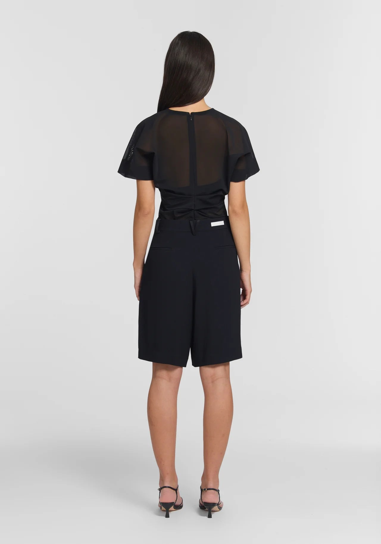 A cornerstone of the season, the Bellatrix Short is crafted from luxurious satin-back crepe in a mid-rise bermuda silhouette. Offering a modern take on minimalism with an artful, understated nuance, it features an asymmetric tailored waistband, wide-leg profile, functional pockets, and double belt loops, finished with an ivory branded pip at the back.