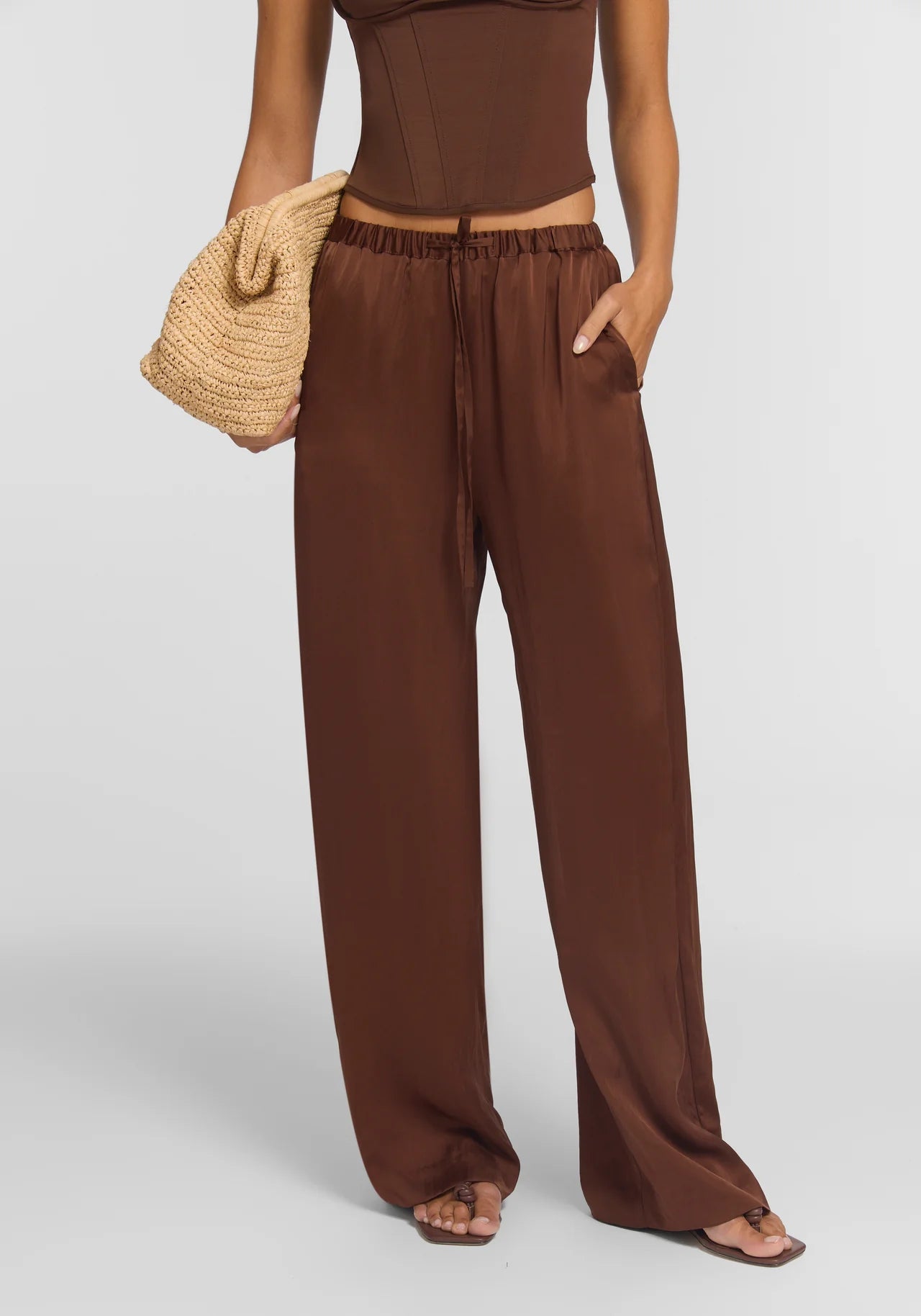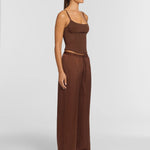 The Rocky Pant is reimagined in a rich chestnut brown, crafted from our signature cupro blend. With a loosely tailored fit, wide leg, elasticated waistband with functional drawcord, and a tonal side-seam panel, it offers effortless, elevated ease. Pair with the Halcyon Tunic for a look that speaks to modern minimalism, or wear back with this season’s chestnut and rose-water pink palette for a refreshing contrast.