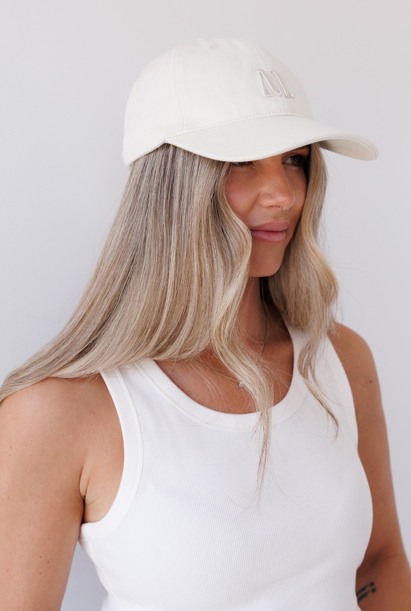 Clean, minimal and effortlessly cool, this classic cotton cap is designed in a soft ecru tone with subtle tonal embroidery for a refined, modern feel. It’s the kind of piece that instantly pulls a look together — whether you’re styling activewear, denim, or relaxed tailoring.