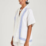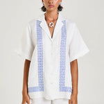 Crafted from a linen blend, the Collared SS Shirt offers a boxy silhouette and features the embroidered SS Sol Script border. A refined and polished shirt for everyday wear