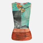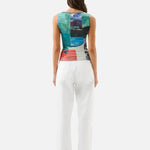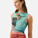 Introducing the Darcy Tank, crafted from a soft mesh fabrication rendered in the bespoke Wonderland print. Featuring a fitted silhouette and classic round neckline, the Darcy Tank is the ultimate elevated wardrobe companion. Please note print placement is individual and unique to each piece.