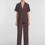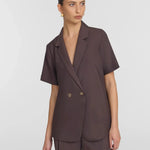 The Hepburn Shirt returns in a rich chocolate hue, tailored from our signature bamboo blend. Featuring a double-breasted front, relaxed fit, and back vent, it offers timeless versatility. Pair effortlessly with the Ivanhoe Pant for a refined set, or style back with denim for polished ease.