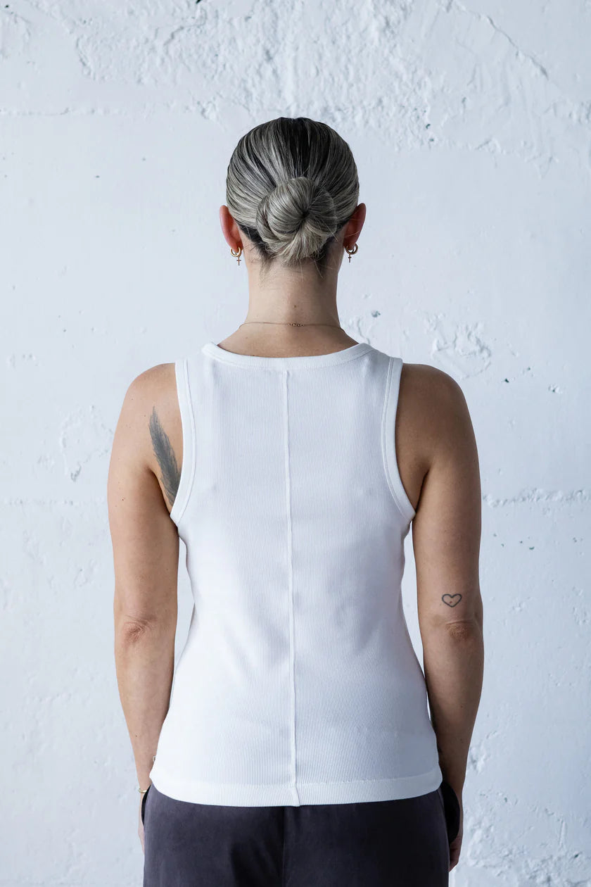 The Louis Tank is an easy wear wardrobe essential for your everyday outfit. Made from premium stretch cotton fabric for a lightweight luxurious soft feel. Cut to a fitted silhouette with a scoop neckline, bra friendly shoulder straps and a fine rib texture throughout. The Louie Tank can we worn with your favourite denim or layered under your Bec Shirt for an everyday elevated look.