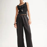 Made of a luxuriously soft, double-faced recycled Japanese satin, the Mina Pant is an elevated casual piece for low maintenance outfitting. Cut to a mid-rise with an elastic, adjustable waistband, these pants have a full length wide leg silhouette. Style with seasonal knitwear and basics for weekend comfort or opt for a coordinated look with the Ella Shirt.