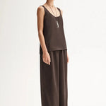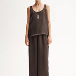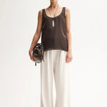 The Mina Tank is a true elevated basic. Made of a luxuriously soft recycled Japanese satin, this top is cut to a relaxed fit with a low scoop neckline. Style for day to night outfitting with soft tailored pants or coordinate with the Mina Maxi Skirt.