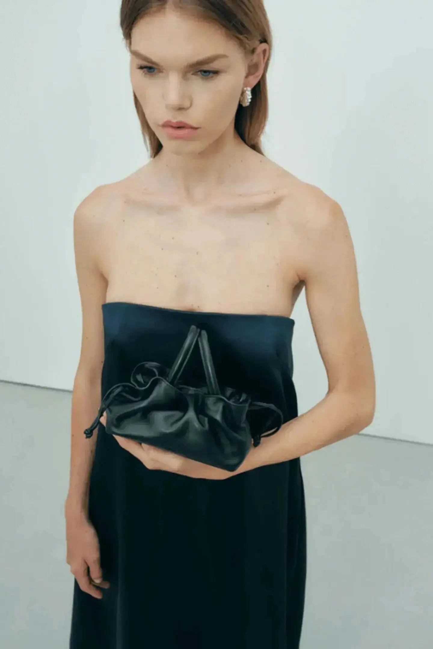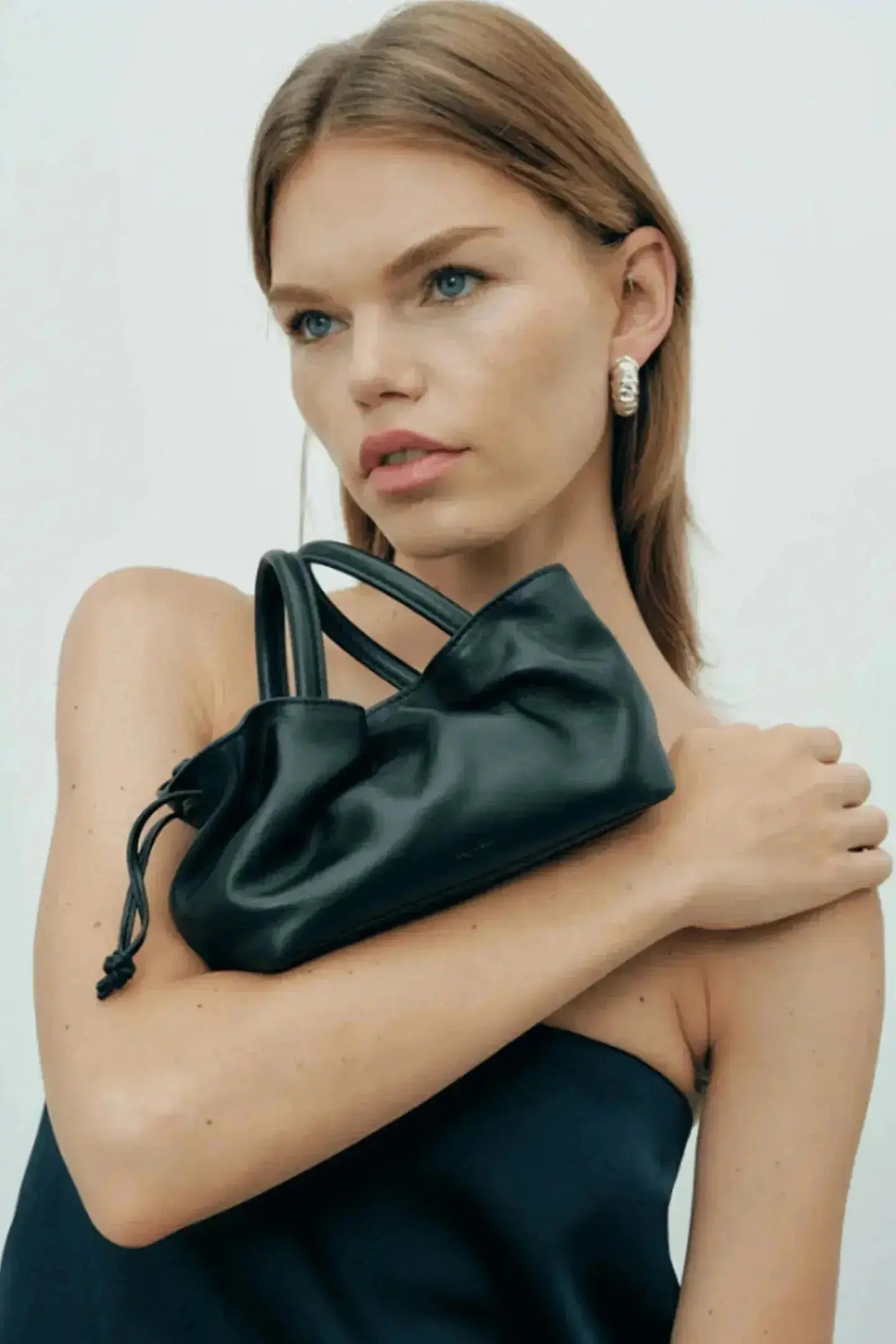 The Mila Mini Tote in Black from Rylan is a versatile design, initially created as an event bag but perfect for seamless day-to-night wear. Compact yet functional, it fits an iPhone Plus, card wallet, lipstick, and other small essentials. Crafted from luxurious sheep leather, it comes with two interchangeable shoulder strap- a longer adjustable strap for crossbody wear and a shorter option for under-the-shoulder styling. Pair with a sleek evening dress or tailored separates for a polished, modern look.