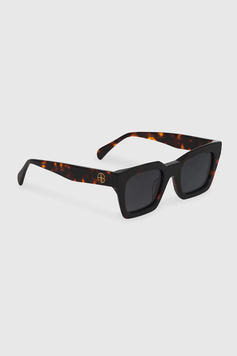 The best-selling Indio Sunglasses feature oversized square frames accented with a gold-tone ANINE BING monogram at each temple. This pair is made from dark tortoise acetate fixed with black lenses. Polarized with UV400 protection.