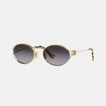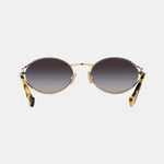 Miu Miu MU 52YS are a stylish choice for those looking for an accessory that will effortlessly complement any outfit. The metal frame, with its oval shape and polished finish in pale gold color, exudes elegance. These shades feature the iconic Miu Miu bow on the temples, adding a touch of sophistication to the overall design. The grey gradient lenses provide both style and functionality, while ensuring optimal protection from harmful UV rays