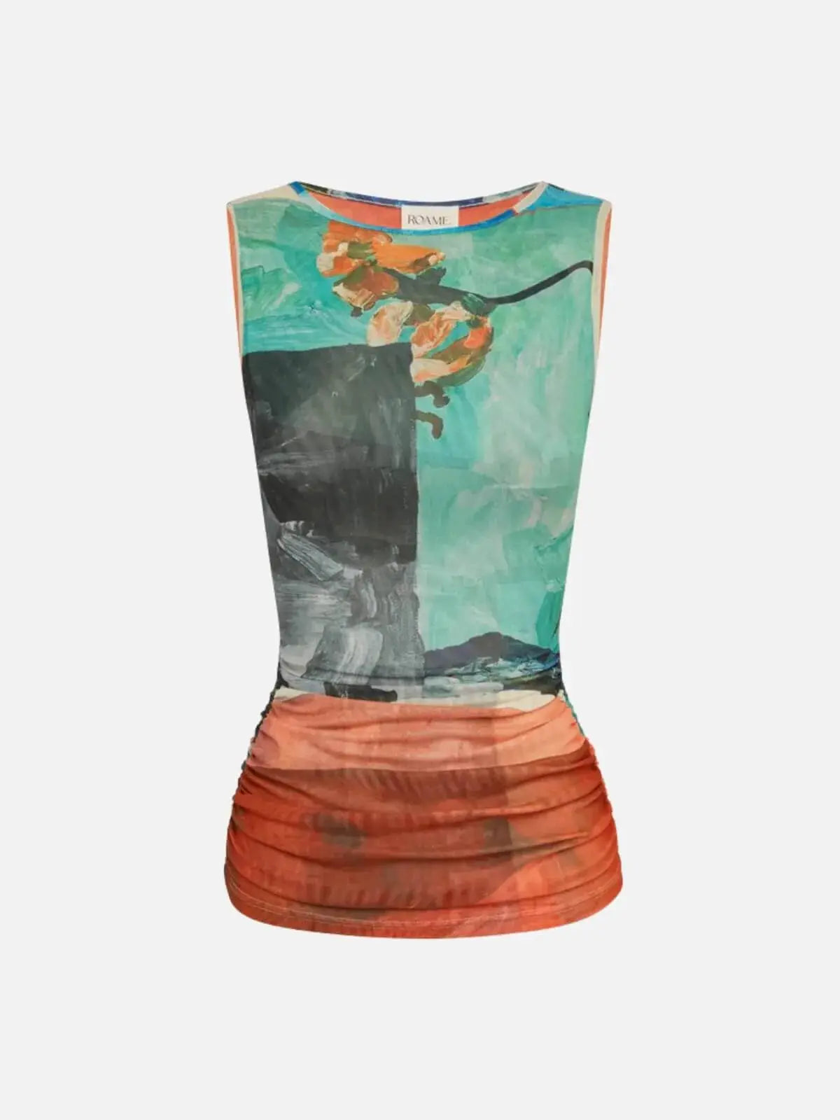 Introducing the Darcy Tank, crafted from a soft mesh fabrication rendered in the bespoke Wonderland print. Featuring a fitted silhouette and classic round neckline, the Darcy Tank is the ultimate elevated wardrobe companion. Please note print placement is individual and unique to each piece.