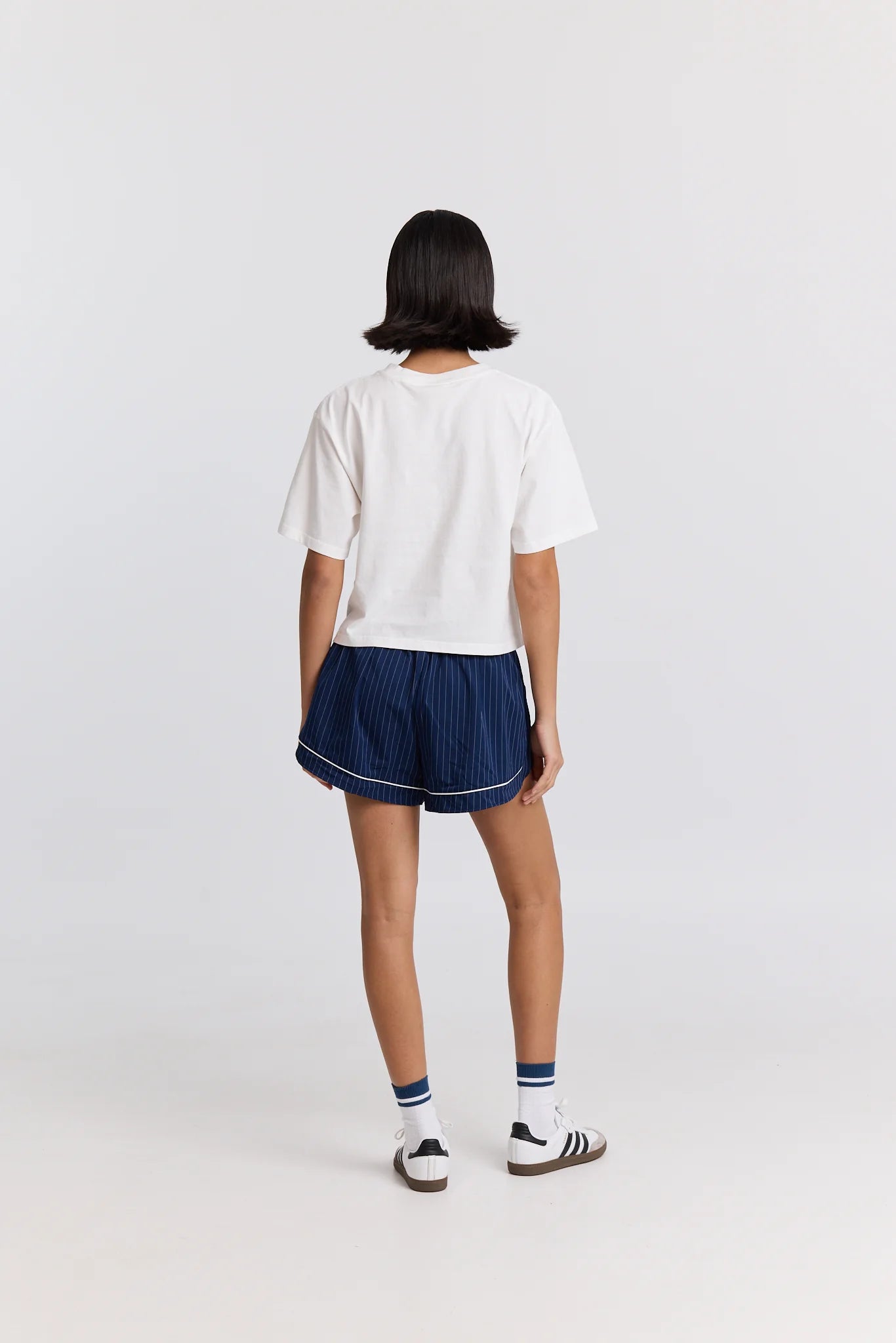 • Boxy silhouette, below-belly-button length