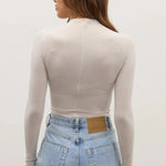 Meet our new Amrita Bodysuit in Baby. A timeless yet stylistic piece crafted from soft, stretch-knit fabric in a Baby mono tone. This bodysuit is a key addition to your capsule wardrobe by seamlessly combining comfort with style.
