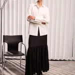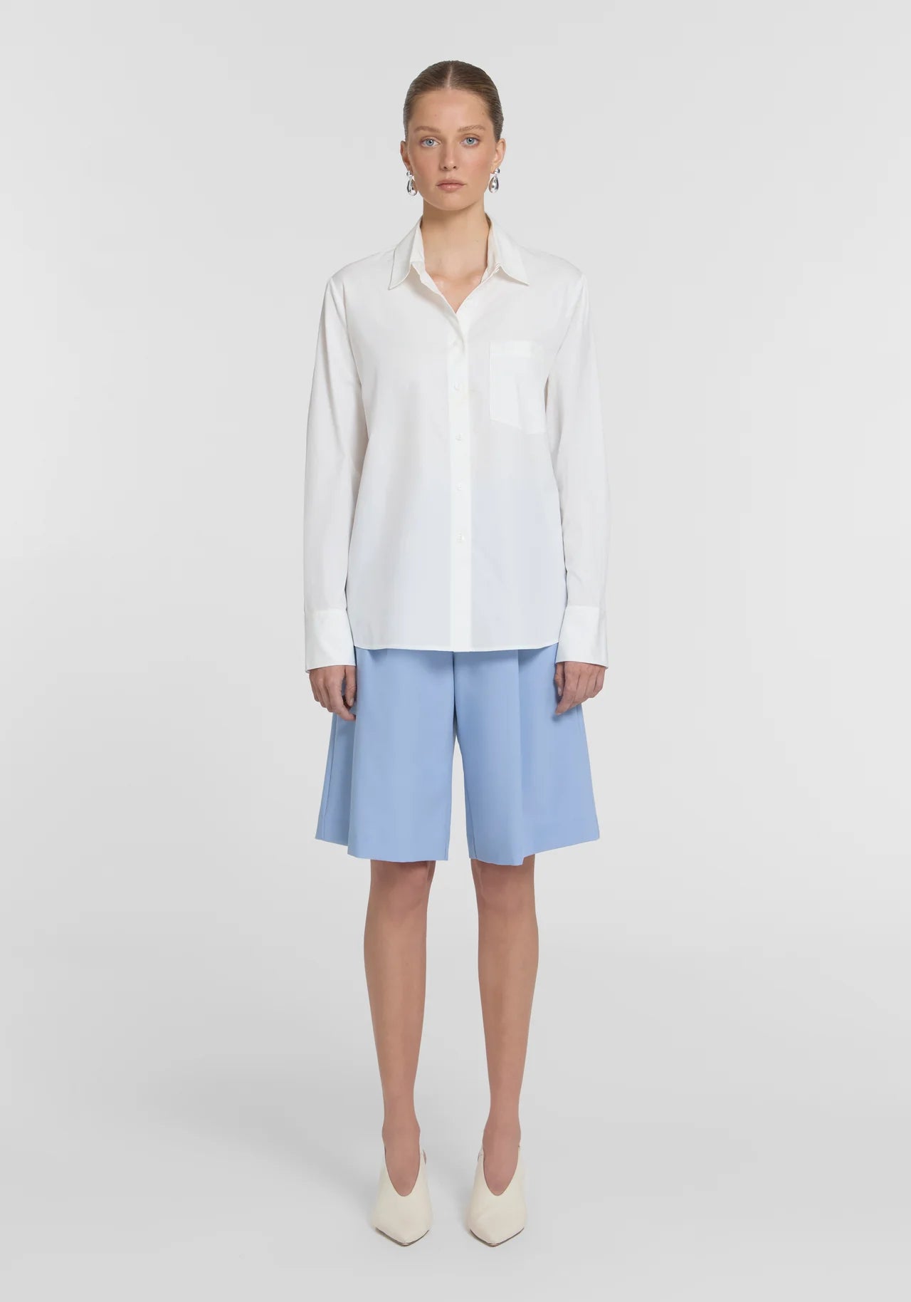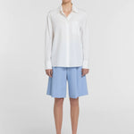 An essential investment for the modern wardrobe, the Divinity Shirt is crafted from crisp organic cotton in white. Designed with a classic collar and placket, relaxed shoulders, and a longline silhouette, it offers details that matter, a storm-flap back with cut-out and drawstring, logo buttons, and V&W embroidery. Representing the intersection of utility and authority, it delivers traseasonal ease.