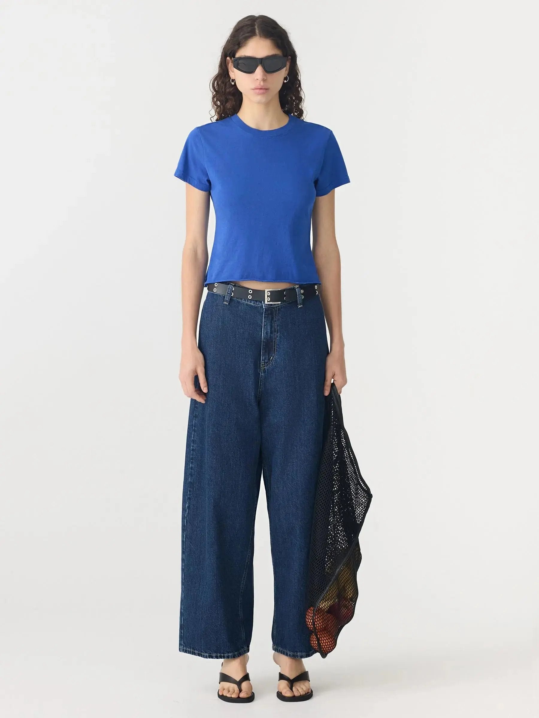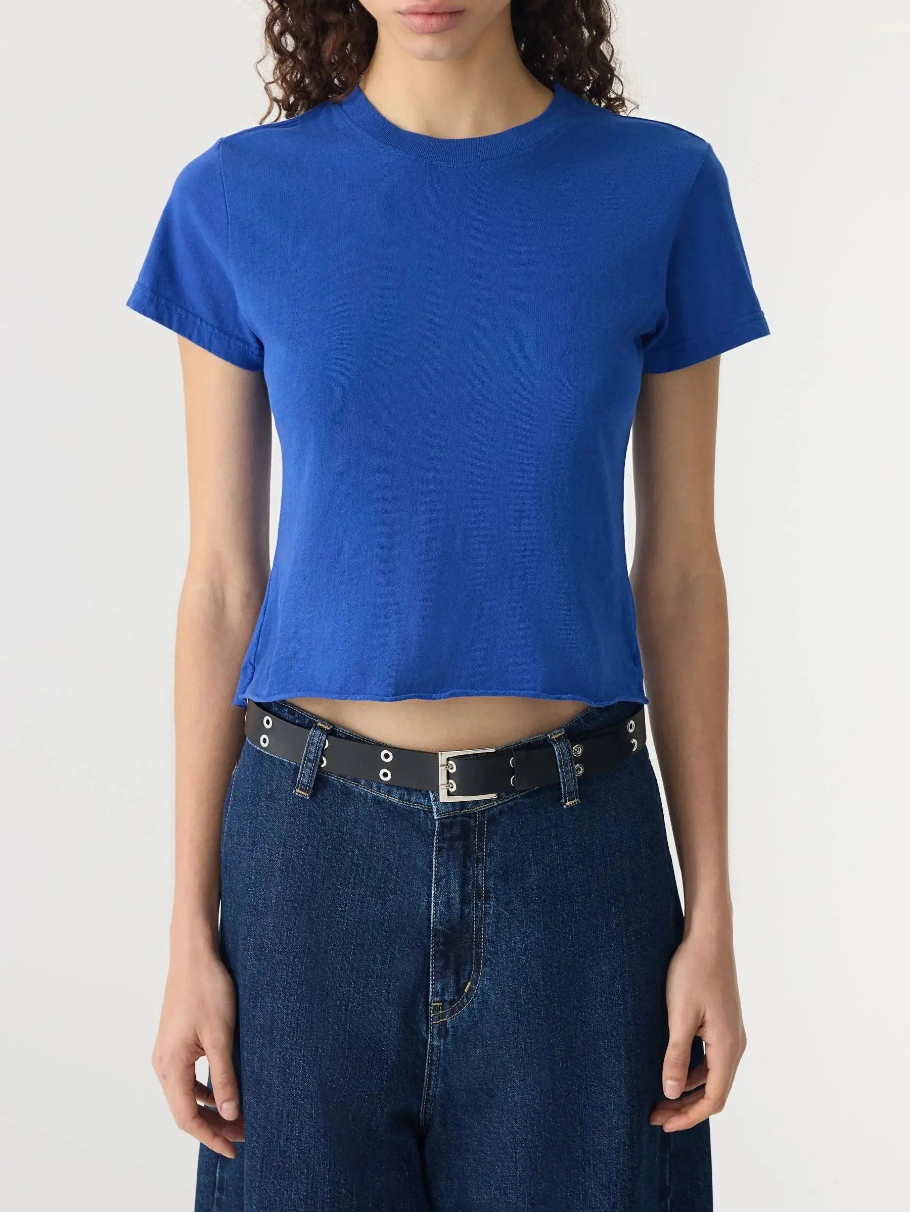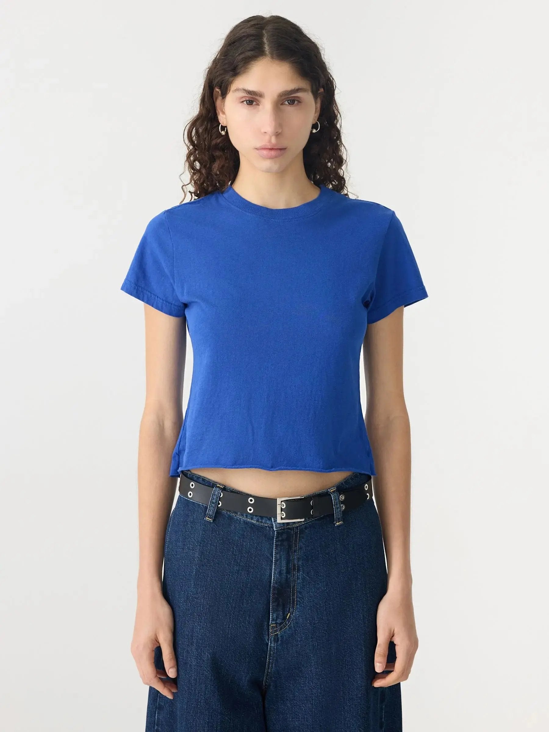 Designed as a high rotation staple, the Raw Edge Baby T-Shirt is crafted from light-weight organic cotton single jersey for a slim fit shape. The final garment boasts a classic crew neck in organic cotton rib, cap sleeves and a cropped silhouette. Refined by a raw edge hem and signature contrast Bassike stitch detail. Easy for everyday wear.