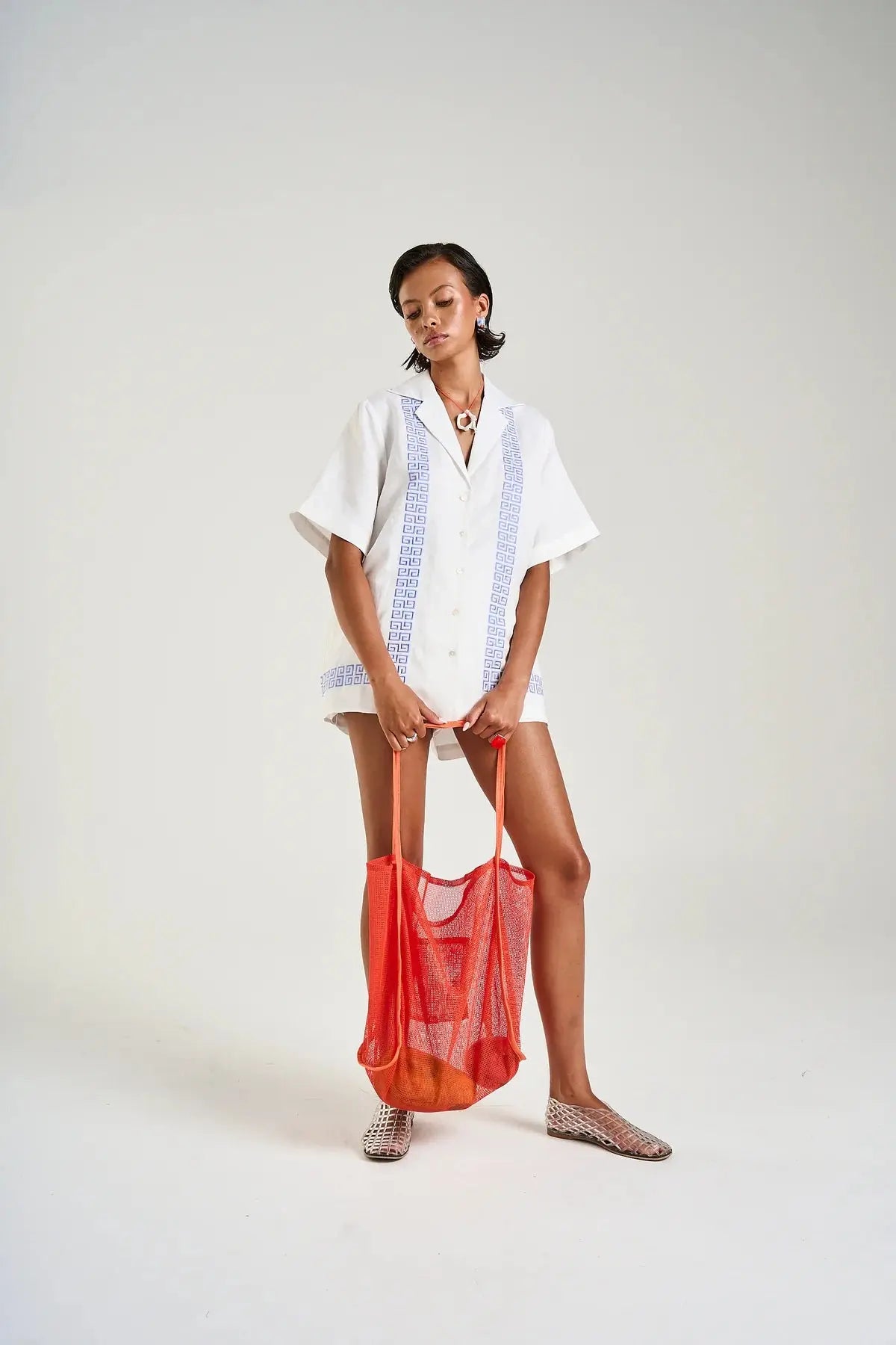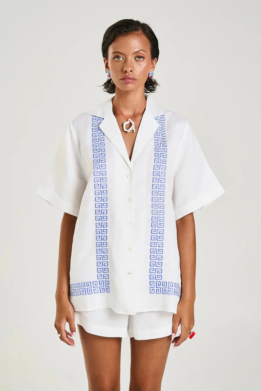 Crafted from a linen blend, the Collared SS Shirt offers a boxy silhouette and features the embroidered SS Sol Script border. A refined and polished shirt for everyday wear