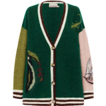 - Oversized V-neck cardigan silhouette