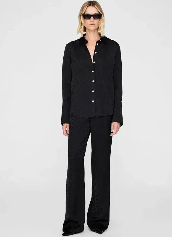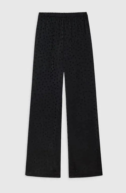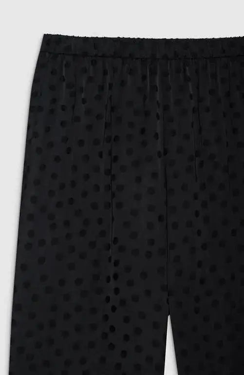 The Elain Pant is an effortless and flowy separate made from a lightweight, sand-washed cupro blend featuring a subtle black dot design.