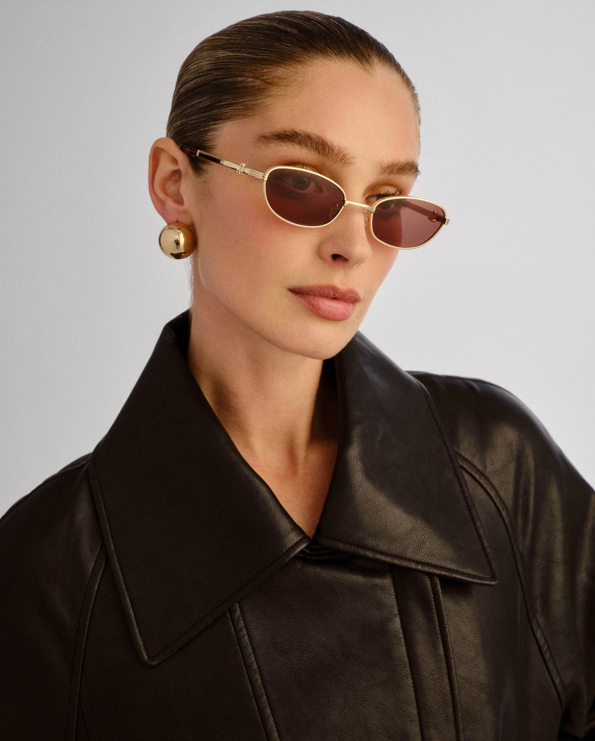 Petite and polished, the Brooklyn is a lightweight metal frame with a softly lifted oval-cat eye shape, designed to subtly elevate and flatter the face. A fine ribbed detailing encircles the lens, adding texture and depth to its minimal silhouette. Finished with our signature wrapped L hardware at the temple, the Brooklyn is a study in quiet elegance , refined, feminine and effortlessly modern.