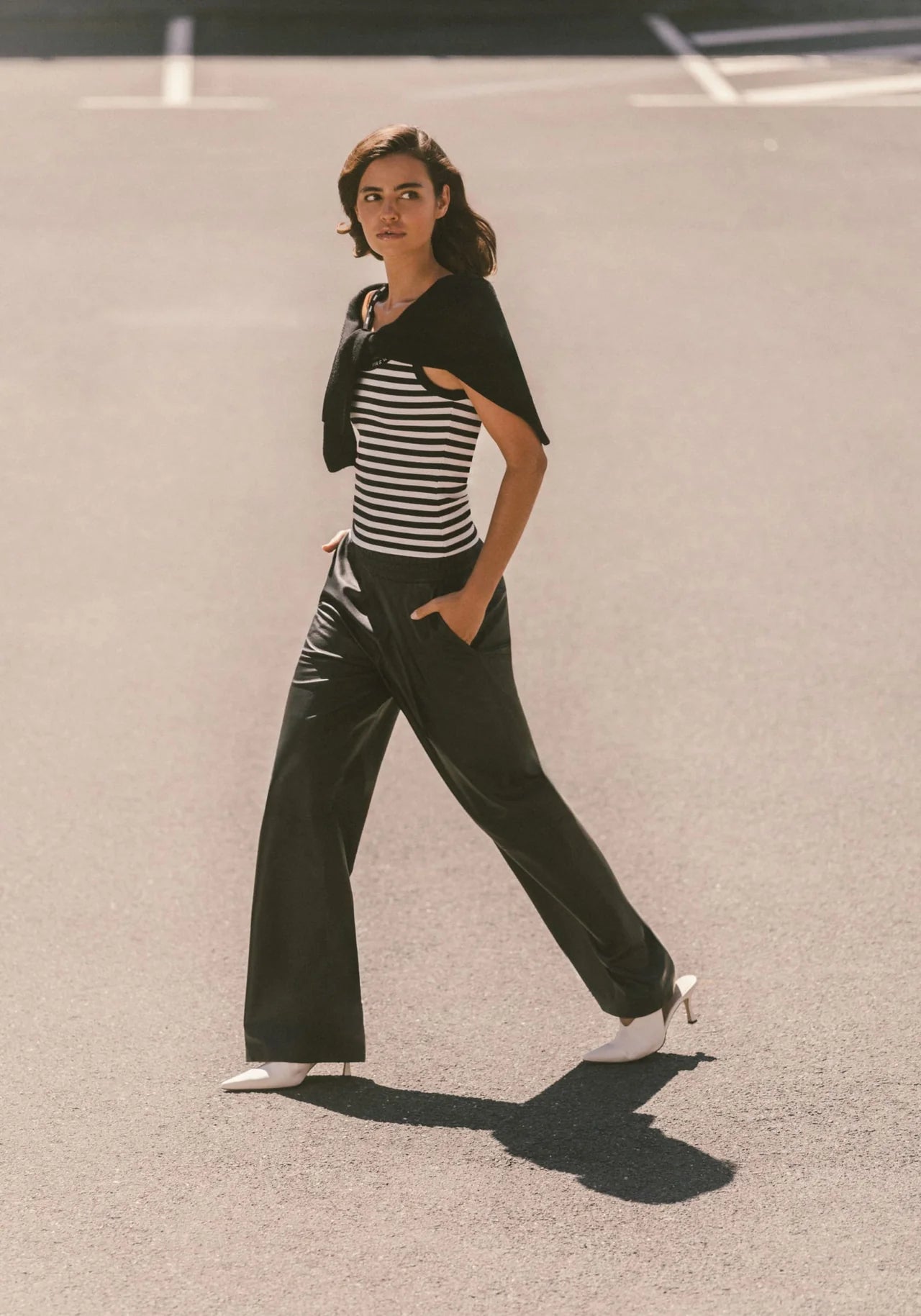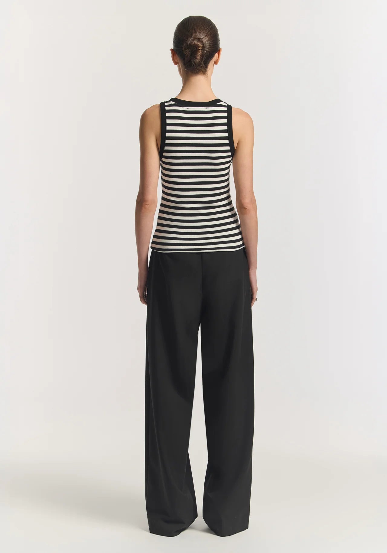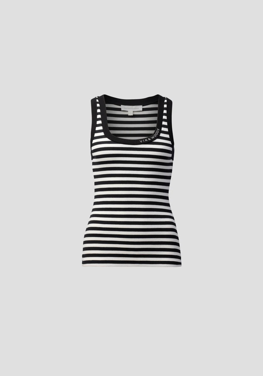 Introducing a new iteration of the Vik & Woods Tank, crafted from our signature 2x2 organic cotton rib in a bold black and white stripe. Designed as a foundation that moves effortlessly through the weekly rhythm, it features a fitted silhouette with a flattering scoop neckline, finished with Vik & Woods embroidery.